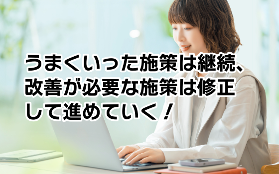 うまくいった施策は継続、改善が必要な施策は修正していきます。